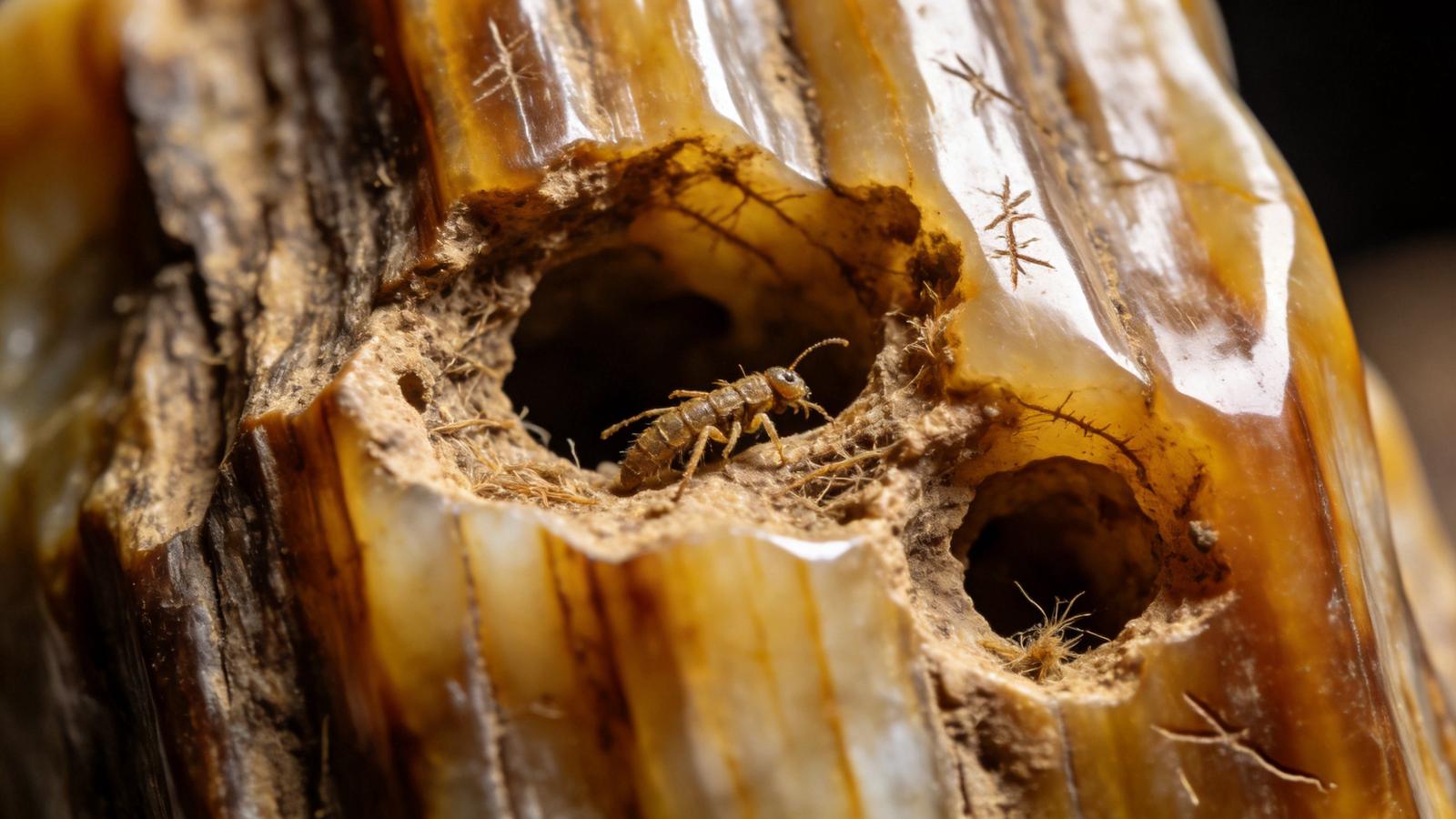 1. 天然蟲眼:孔洞形態不規則(圓形、橢圓或長條形),邊緣粗糙,內壁可見昆蟲爬痕或纖維痕迹,部分蟲洞內還保留完整的硅化虫体化石,是稀缺標誌。
